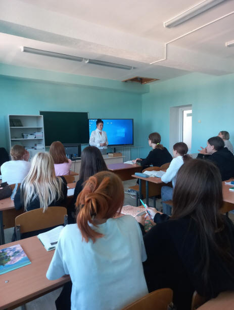 [Опубликовано: Вт 04/03/2025-15:00] 4 марта 2025 года в колледже состоялась лекция, приуроченная к Международному дню борьбы с наркоманией и незаконным оборотом наркотиков. В рамках мероприятия учащиеся пообщались с врачом по медицинской профилактике Поляковой Т.В., библиотекарем районной библиотеки Зинкевич И.А. посмотрели тематический видеоролик и получили информационные листовки и буклеты.