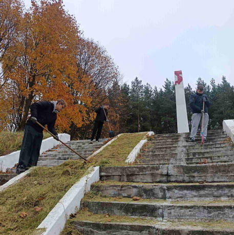 [Опубликовано: Пт 24/10/2025-12:50] 23 октября 2025 года в преддверии республиканского субботника учащиеся колледжа плодотворно потрудились на уборке памятного знака «Стела».