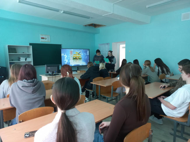 [Опубликовано: Чт 19/02/2026-11:00] 18 февраля 2026 года сотрудники районной библиотеки провели мероприятие для учащихся колледжа, приуроченное Международному дню родного языка.