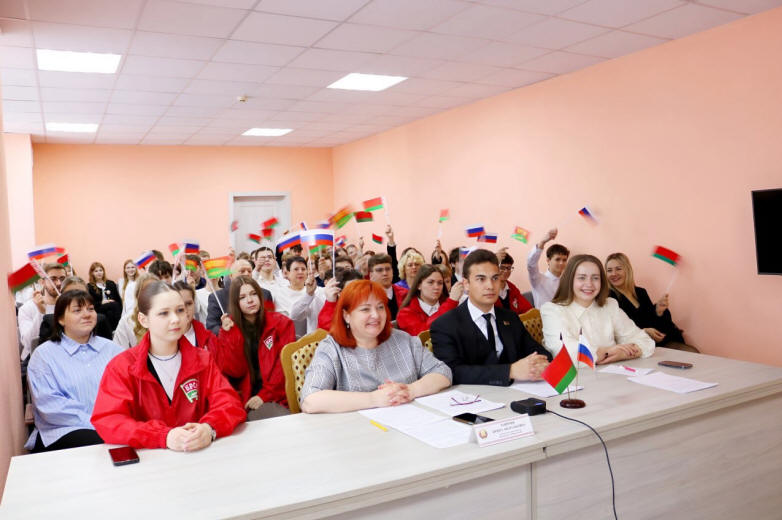 [Опубликовано: Чт 02/04/2026-15:30] 2 апреля 2026 года, в День единения народов Беларуси и России, активисты БРСМ колледжа посетили телемост с городами-побратимами Шклова – Югорском, Оленино и Луховицами.