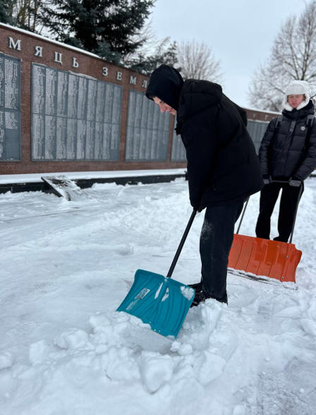 [Опубликовано: Пт 09/01/2026-12:00] 8 января 2026 года активисты БРСМ колледжа оказали помощь в уборке снега возле мемориального комплекса "Память".