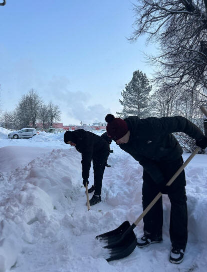 [Опубликовано: Чт 08/01/2026-10:00] Молодежь колледжа принимает активное участие в уборке снега!