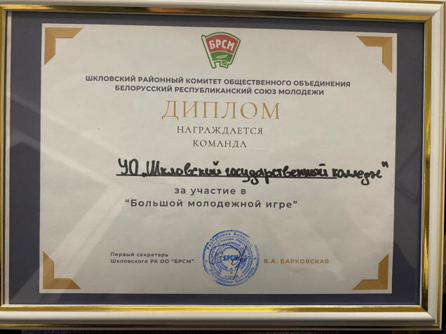 [Опубликовано: Пн 19/01/2026-15:00] 16 января 2026 года учащиеся группы ВМ-25 приняли участие в квизе БРСМ «Большая молодежная игра».