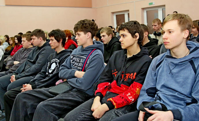 [Опубликовано: Пт 20/03/2026-8:50] 19 марта 2026 года накануне весенних каникул в актовом зале состоялось общеколледжное собрание с участием начальника инспекции по делам несовершеннолетних Бакуновича Р.А. и начальника Шкловской спасательной станции ОСВОД Чернявского С.Р.